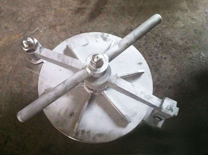 旋柄快開人孔即縮小的人孔,其安設是為了安裝、拆卸、清洗和檢修設備內部裝置。 旋柄快開人孔的結構基本相同,由一個短筒節,蓋上一塊盲板構成。旋柄快開人孔直徑一般為150~250mm,應使工人戴上手套并握住工具的手能方便地通過,標準化旋柄快開人孔的公稱直徑有DN150、DN250兩種。當設備公稱直徑大于或等于1000mm時,宜設置旋柄快開人孔。